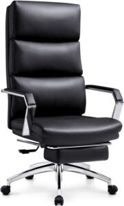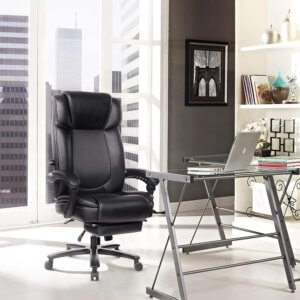 Duramont makes one of the most high-quality chairs in the market such as the Duramont reclining leather office chair. It features a high-back design with soft padding all over. The chair weighs 58 pounds and has a top weight capacity of 250 pounds.